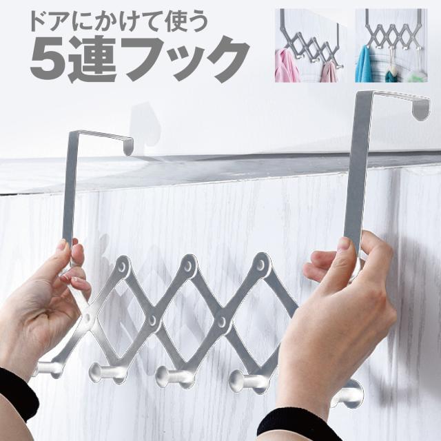 5連フック ドアフック 折りたたみ式 扉 ドア 伸縮 ステンレス フック doorhook