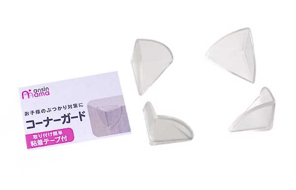 コーナーガード あんしんママ 粘着テープ付 3.7×2.1×2.8cm 4個入 (100円ショップ 100円均一 100均一 100均)