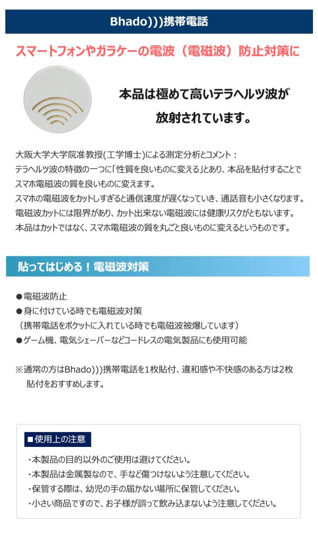 ※ 通常の方はBhado)))携帯電話を1枚貼付、違和感や不快感のある方は2枚貼付をおすすめします。
