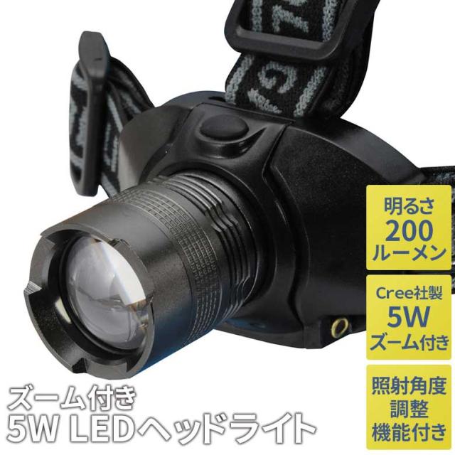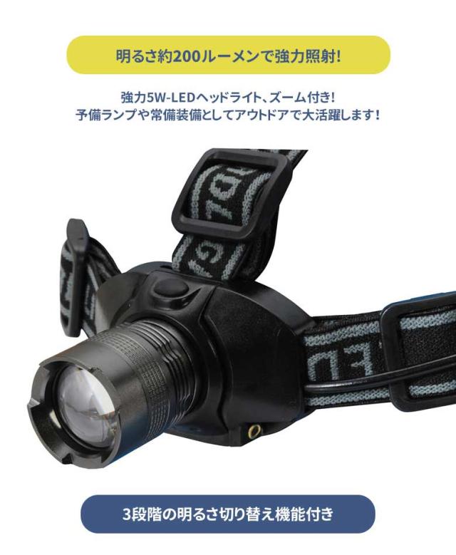 ●アウトドアで大活躍する強力5W-LEDヘッドライト(ズーム付き)