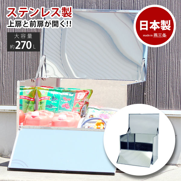 サビに強いZAM鋼板(高級外壁材でも使われています)とステンレスの2種類の材質から選べます。 ・サビにくく劣化しにくいZAM鋼板、スレンレスの2種類から選べます、業務用としても安心してお使い頂けます。 ・設置場所にあわせて2サイズより選べます。 ・上扉、前扉開いて大きな物の出し入れに便利。 ・安心の日本製!金属加工技術で有名な新潟県の燕三条ブランド商品。 ・盗難防止にカギ(市販の南京錠等)も付けられます。 |