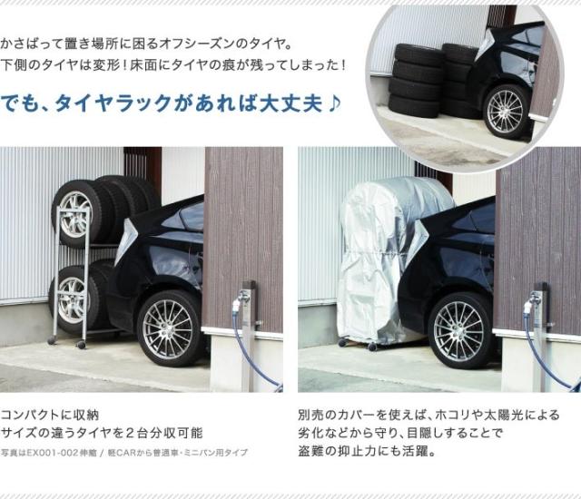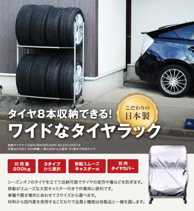 タイヤラック 固定 日本燕三条製 8本 キャスター付き 屋外 二台分 物置 横置き 頑丈 2段式 タイヤ収納 カバー選択可能 EX001-001 収納ラック