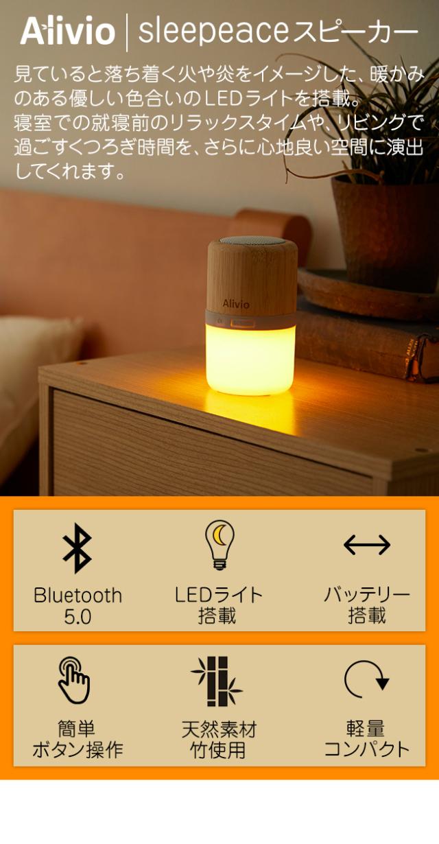 スピーカー bluetooth ライト付き ブルートゥース アウトレット sleepeace 木製 木目 高音質 おしゃれ ゆらぎ インテリア led ledライト ワイヤレス usb 小型 持ち運び コンパクト アウトドア