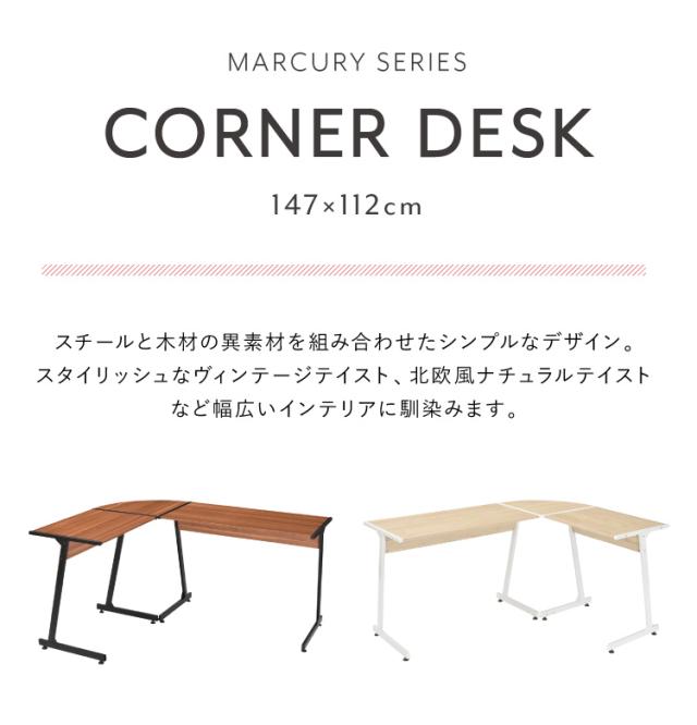 コーナーデスク L字型 147cm幅 パソコンデスク デスク 木製 リモートワーク 在宅勤務 マーキュリーL 書斎 おしゃれ かわいい モダン ホワイト ブラック(代引不可)【送料無料】