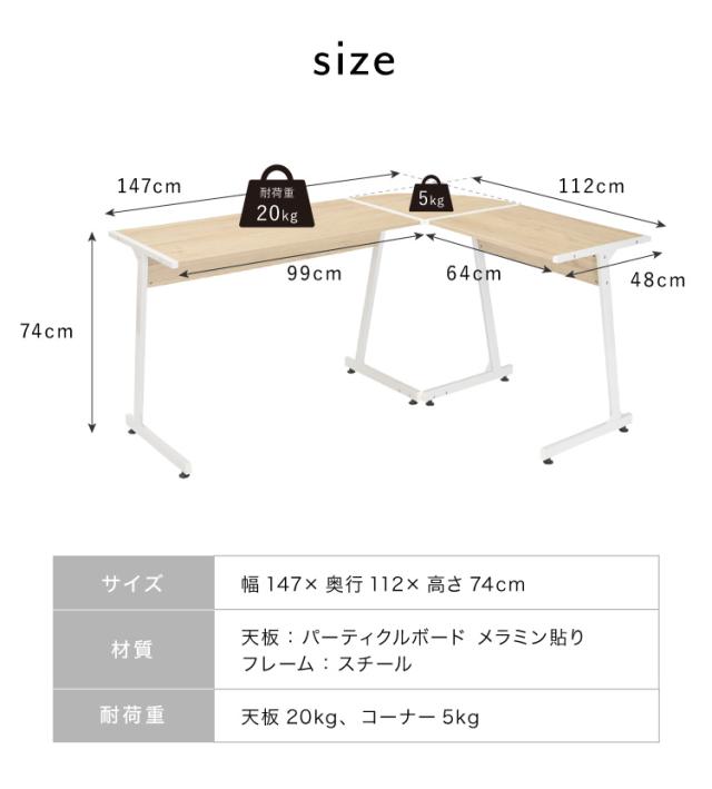 コーナーデスク 幅147cm | ||