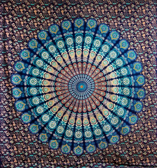 商品の特性上、ほつれや色ムラなどがあります。マルチクロス - ピーコックマンダラ【約228cm x 200cm】 / タペストリー、テーブルクロス、マルチクロス、ベッドシーツ、大きなこたつカバー、ベッドカバー、お部屋の装飾、ソファーカバー、マンダラ、曼荼羅、更紗、唐草、インド綿 布、バティック、パーテーション、ボタニカル、更紗 布とファブリック 【インドとアジアンの布