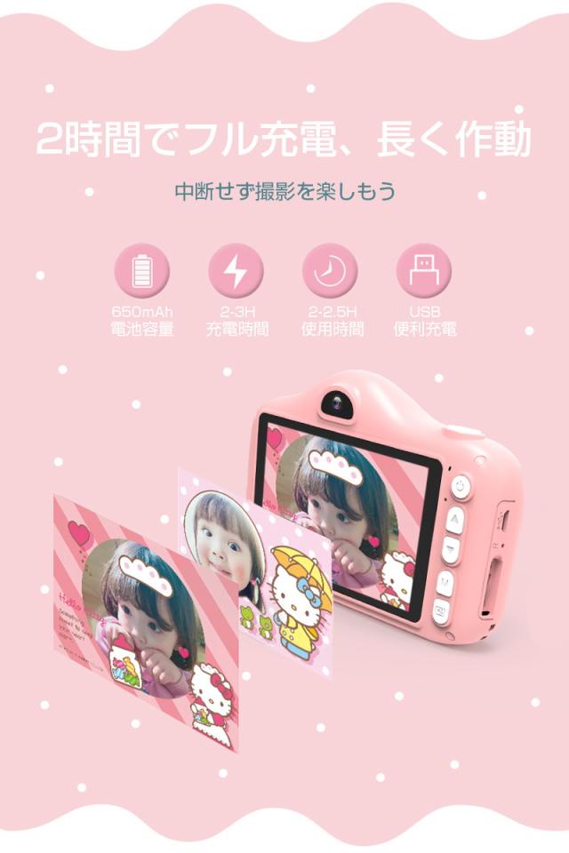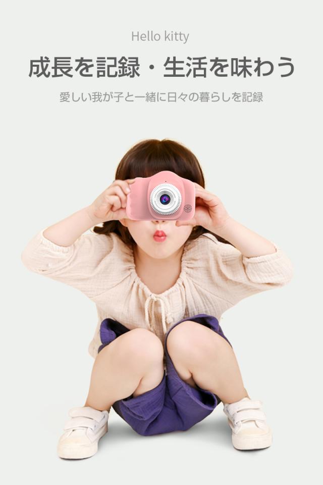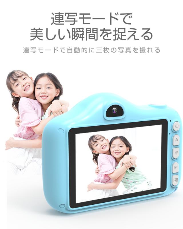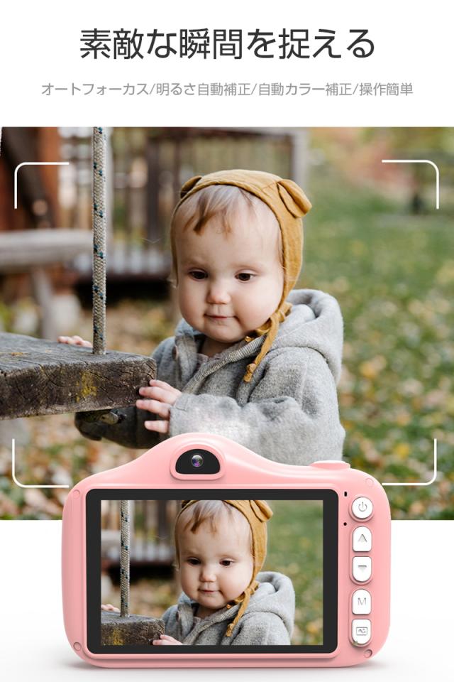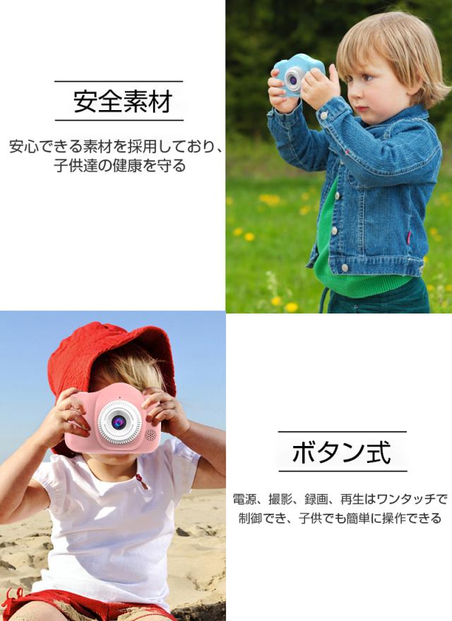 【多機能カメラ】タイムド写真、連続撮影、ビデオ録画、フィルター等の多彩な機能が搭載されていて、子供の好奇心を広げ、成長をサポートします。日付ラベルの追加もでき、大事な日を忘れずに記録しておきましょう。シャッターを押すだけで使用可能ですので、子供でもすぐ使いこなせます。