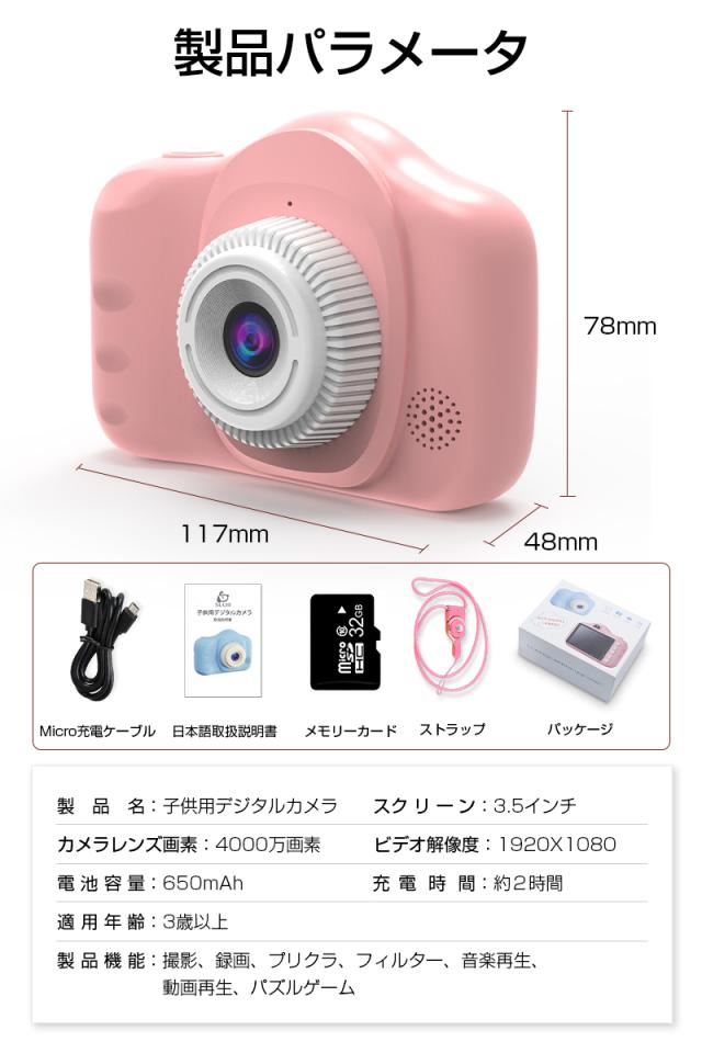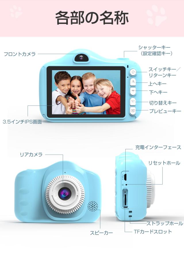 子供用デジタルカメラ キッズカメラ ボタン式 操作簡単 3.5インチ 多機能 ストラップホール付き 可愛い操作音 音量調節 輝度調節 ギフト 【PL保険加入済み製品・安心】