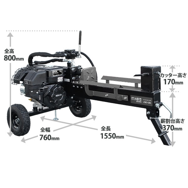 ミナト エンジン薪割り機 LSE-12K+4分割カッター付きセット