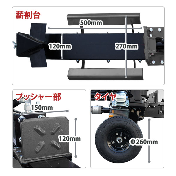 薪割り機を移動するときに便利で、女性や年配の方でも容易に移動できます。