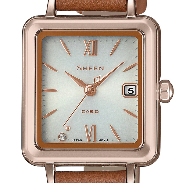 カシオ シーン ソーラーサファイアモデル スクエアフェイス SHS-D400CGL-7AJF レディース 腕時計 ソーラー 本革バンド ピーチゴールド