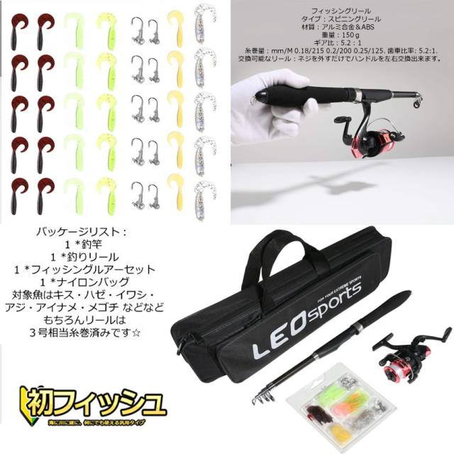 釣竿セット 2点セット 1.6m 釣りセット ルアーセット 初心者 子供 スピニングリール 海釣り 投げ釣り 釣り具 釣り竿セット 釣具セット コンパクト リール付きロッド ルアー ライン付 釣りバッグ付き