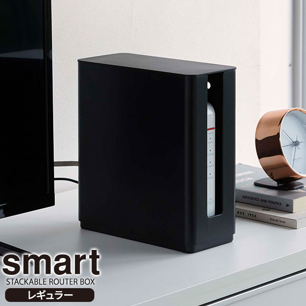 ルーター 収納 ボックス レギュラー モデム HDD 積み重ね 薄型 テレビ裏 シンプル リビング収納 山崎実業 山実 yamazaki smart BOX Wi-Fi 配線 隠す コード まとめる 重ねて収納 ケーブル テレビ裏 蓋付き ふた付き 埃防止 ホコリ防止 イタズラ防止 いたずら防止 スタッキング 幅9.7 奥行20.2 高さ22.2 cm センチ おすすめ オススメ 便利 人気 使いやすい シンプル スマート スタイリッシュ シック モダン おしゃれ オシャレ デザイン スッキリ すっきり 片付く VESA規格 テレビ 背面 裏側 タップ 隠せる ケース モノトーン 安全対策 4903208049139 4903208049146