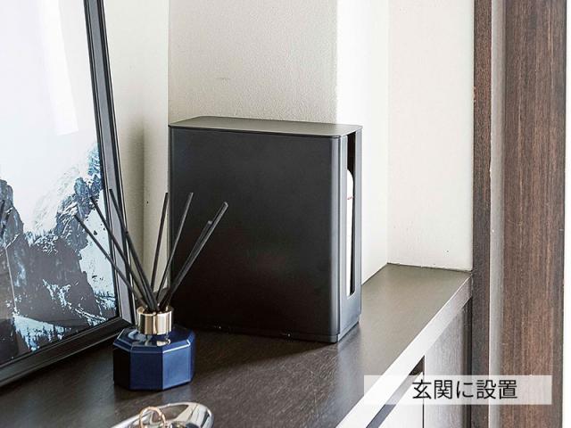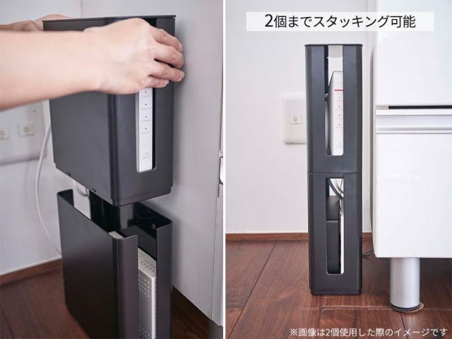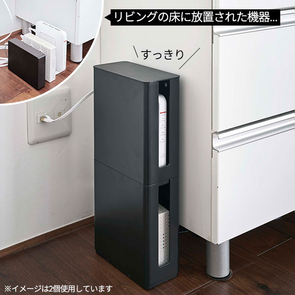 山崎実業 smart スマート 重ねられる スリム 蓋付き ルーター収納ケース ブラック 4914 | ルーター 収納 ボックス レギュラー モデム HDD 積み重ね 薄型 テレビ裏 シンプル リビング収納