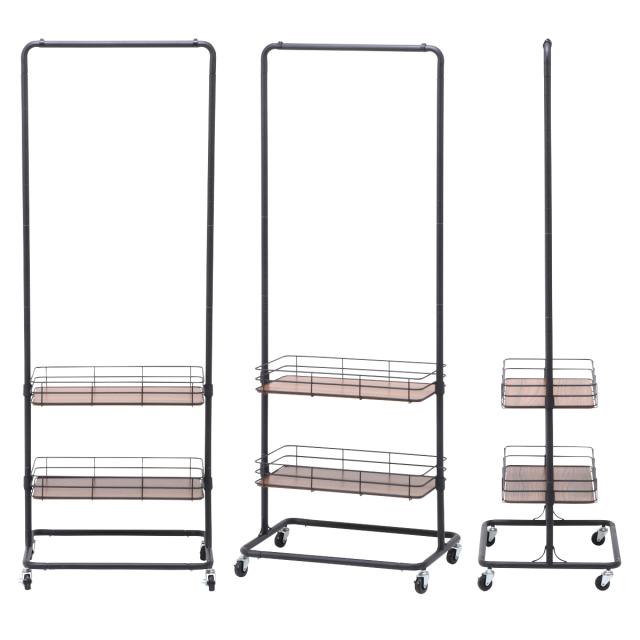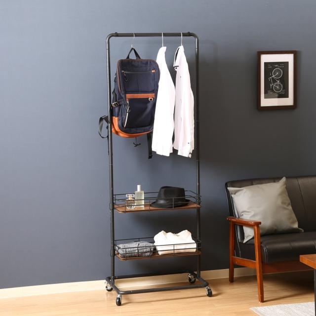 ハンガーラック 幅60cm スチール製 ブルックリンスタイル 2段バスケット ( コートハンガー リビング収納 衣類収納 収納 洋服掛け 洋服収納 ハンガー ラック スチールラック ブルックリン シンプル スチール おしゃれ )