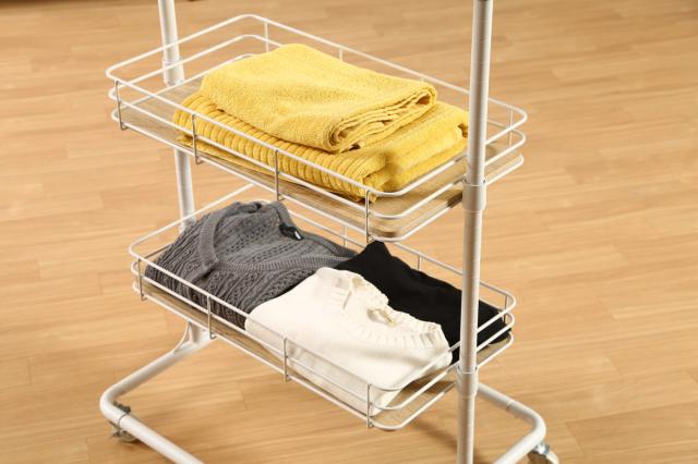 高さ調節可能なバスケットには洋服や小物などもしっかり収納できます。