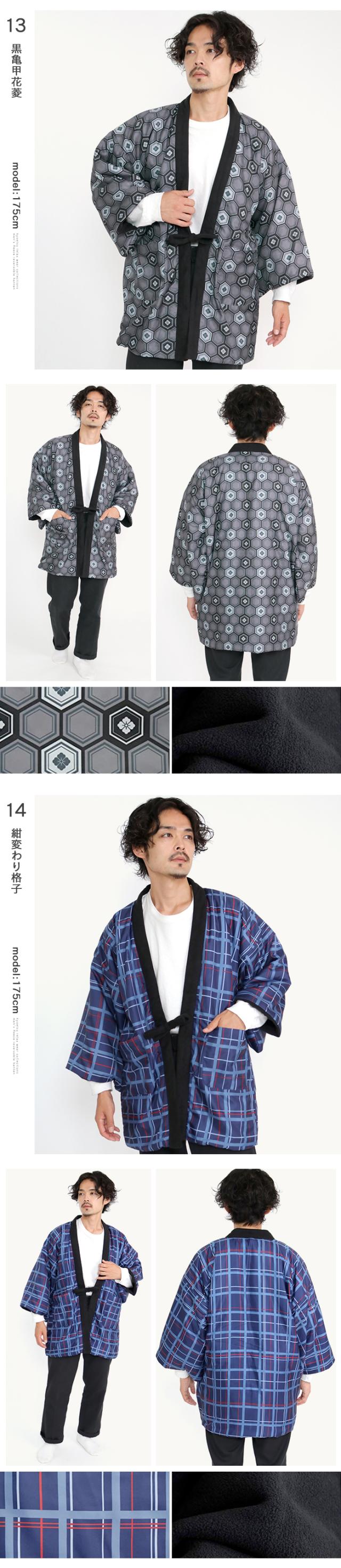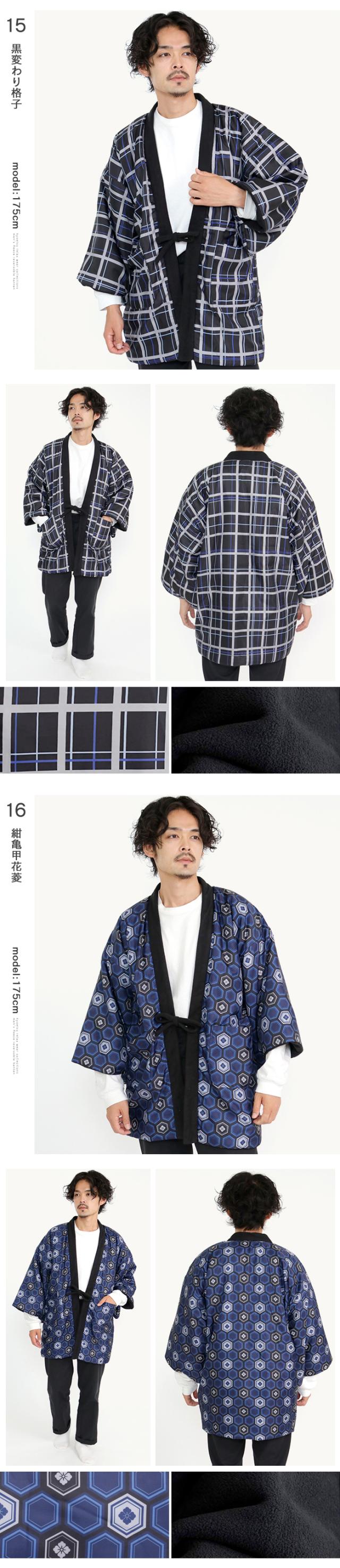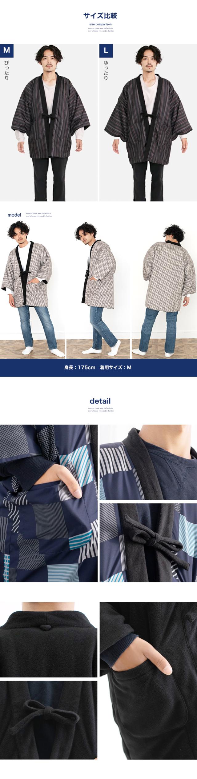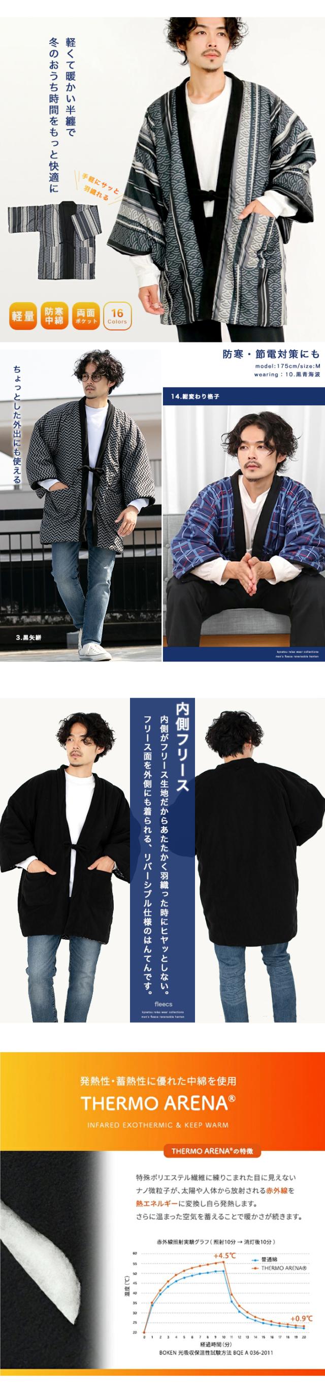 (全16色 フリースはんてん メンズAB) あったか半纏 リバーシブル フリース 男性 メンズ M/L 8柄2配色 半纏 ルームウェア 暖かい 綿入り ポンチョ 袢纏 ちゃんちゃんこ はんてん 半天 どてら丹前(rg)