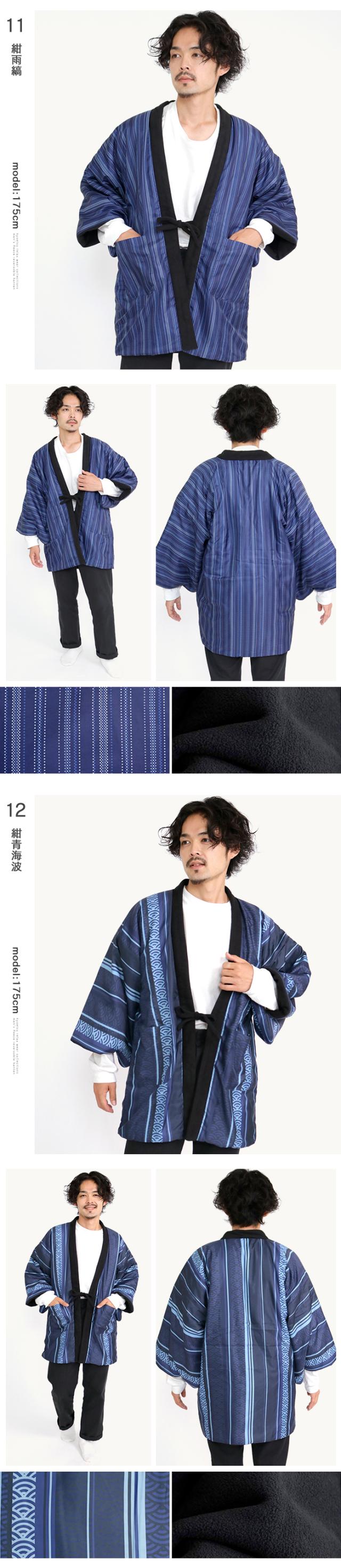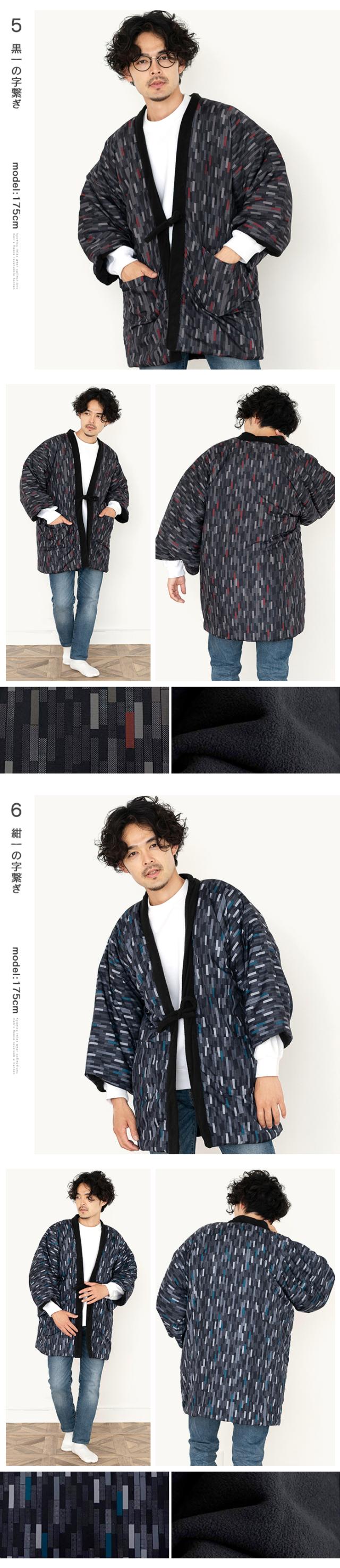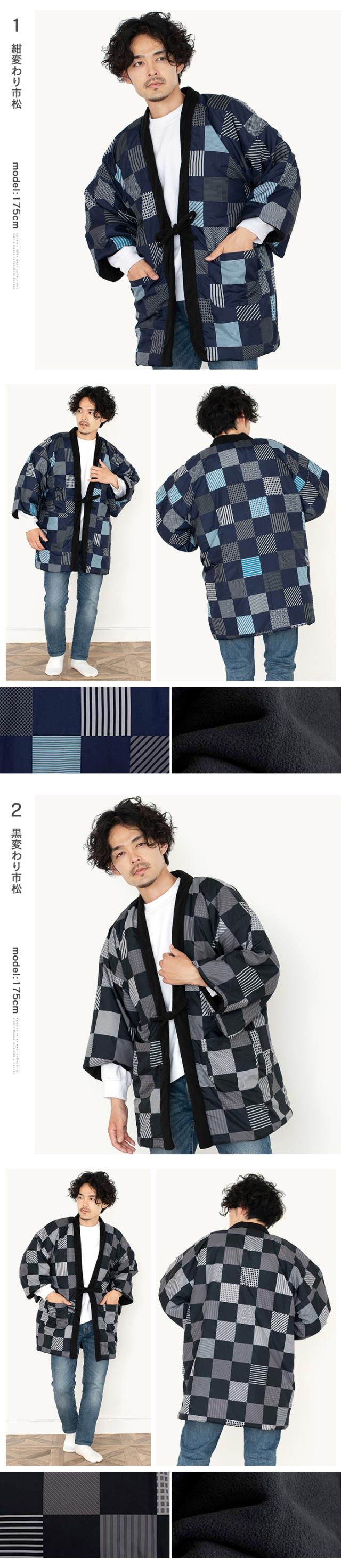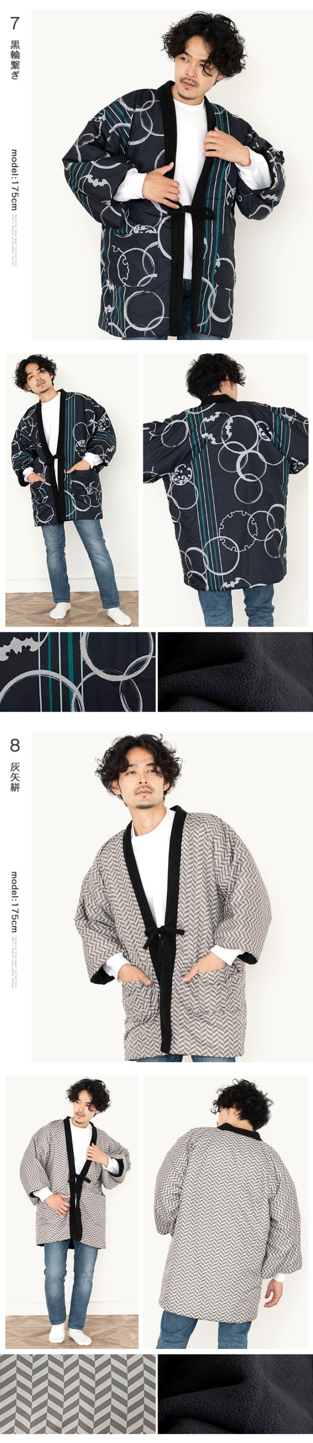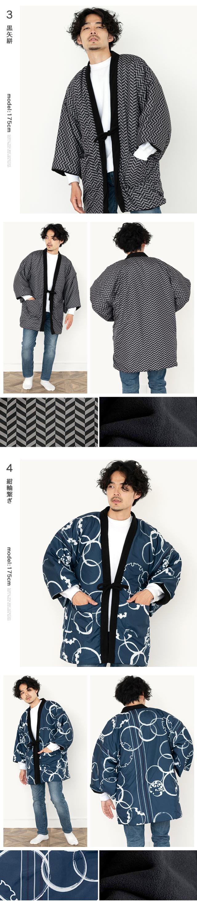 カジュアルな和柄プリントとフリース生地のリバーシブル半纏です。