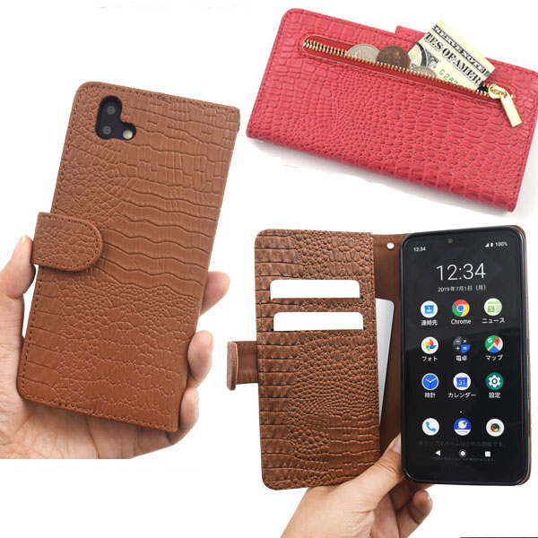 クロコダイルレザーデザインの手帳型ケース。