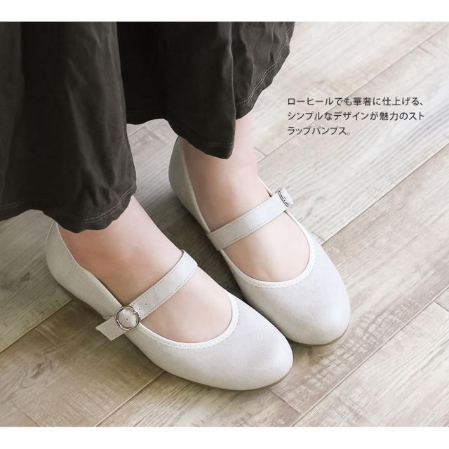 シンプルなデザインが魅力のストラップパンプス。