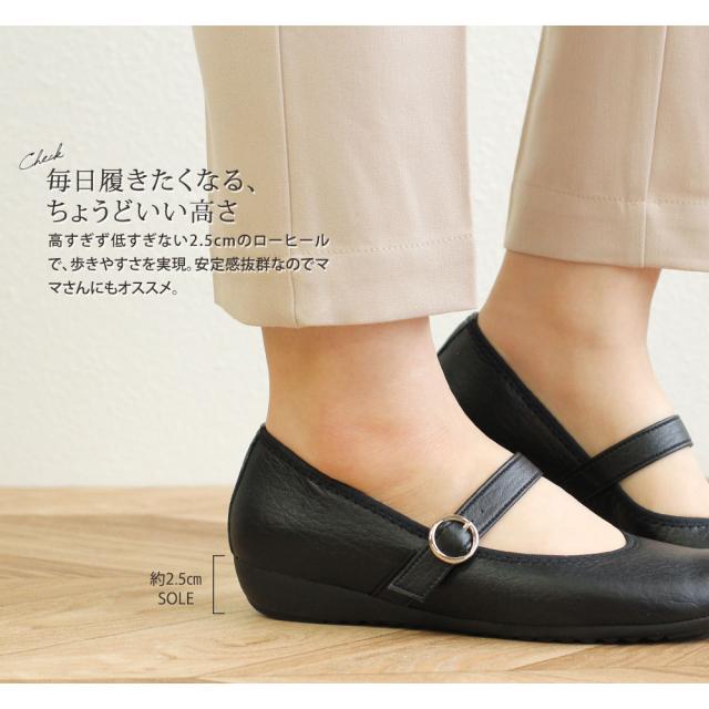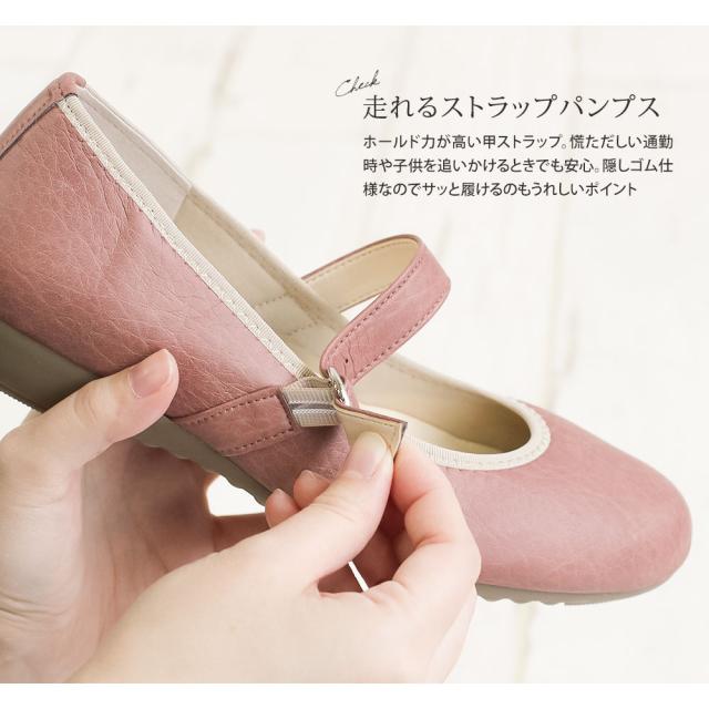 パンプス 痛くない ベルト ストラップ 日本製 婦人靴 アーチコンタクト バレエシューズ フラットシューズ 靴 レディース 歩きやすい 黒 ローヒール コンフォートシューズ ペタンコ靴 小さいサイズ 大きいサイズ 2.5cm 39075