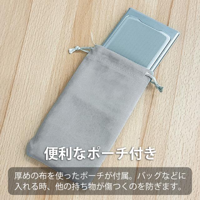バッグなどに入れて持ち運ぶ際、他の荷物を傷つけない巾着袋を同梱。