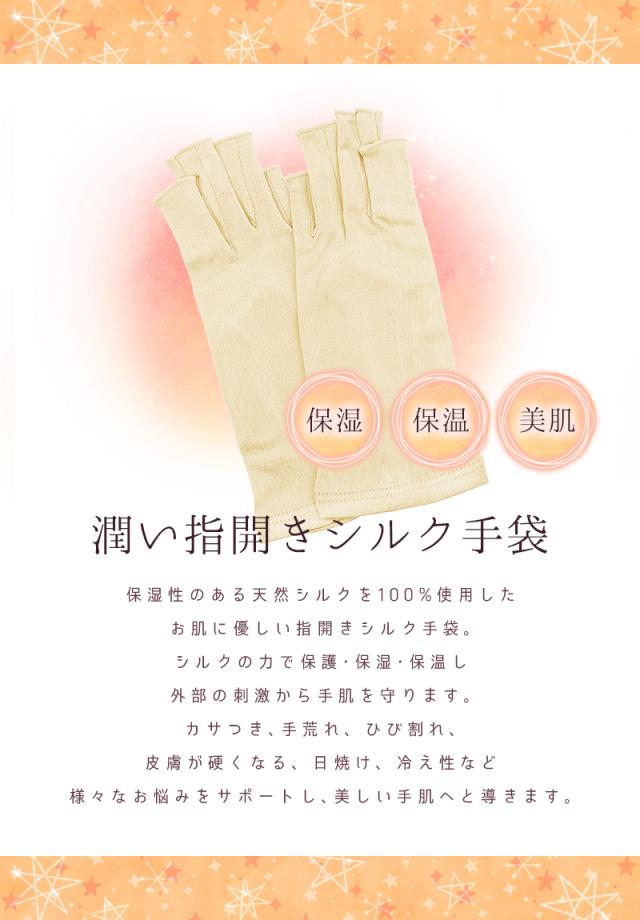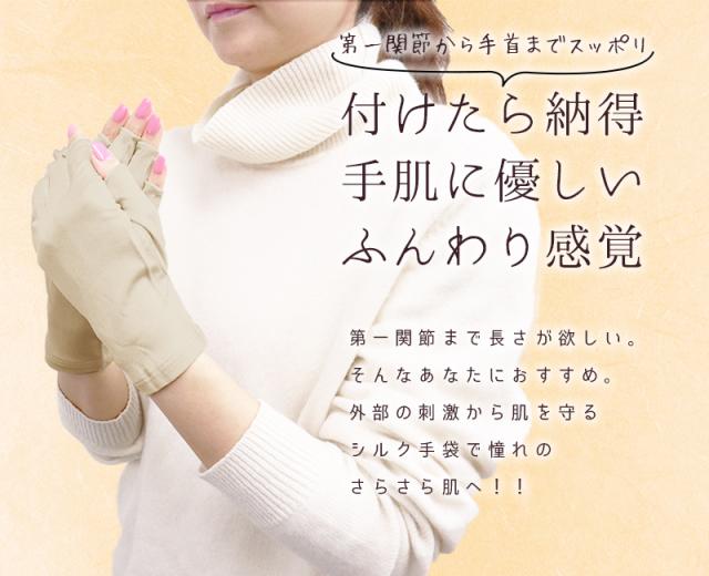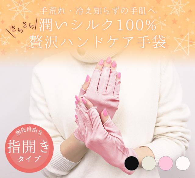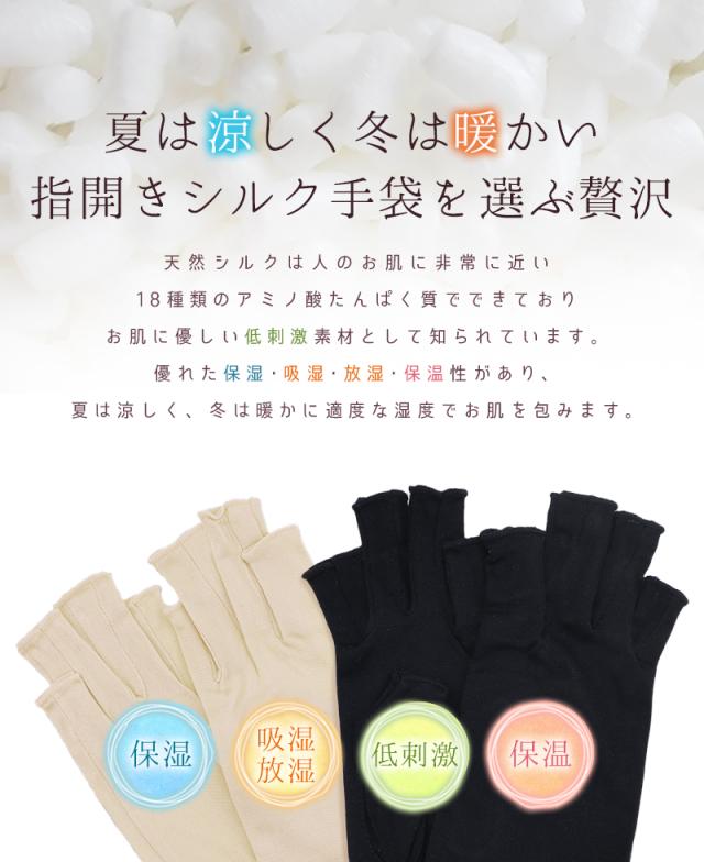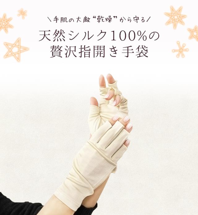 シルク 手袋 シルク100% 「meru1」ハンドケア UV対策 リラックス スキンケア グローブ 指ぬき 指あき 日焼け対策 おやすみ手袋 紫外線対策 オールシーズン対応 手荒れ 乾燥 予防 レディース手袋 ハンドケア用品