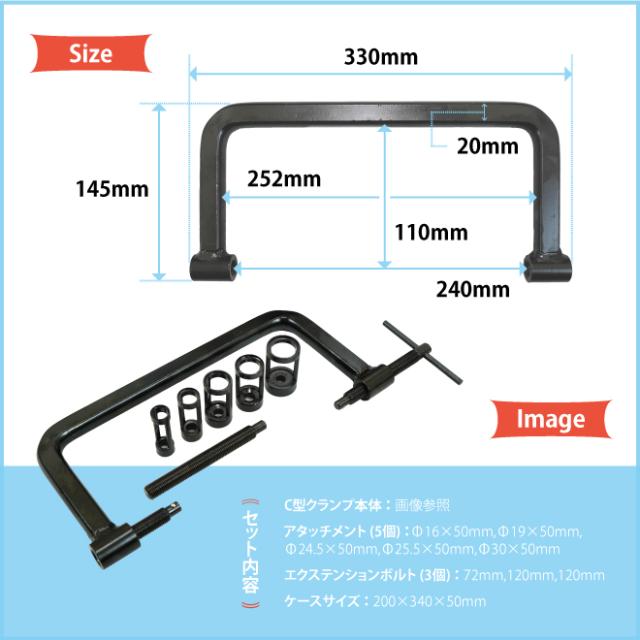 | セット内容 | C型クランプ本体 アタッチメント(5個) エクステンションボルト(3個) |
