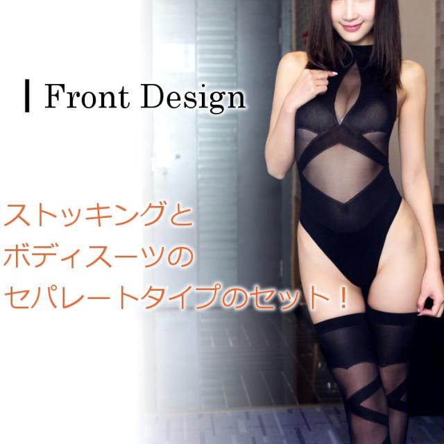 シースルーブラックを基調にしたセクシーボディストッキング。
