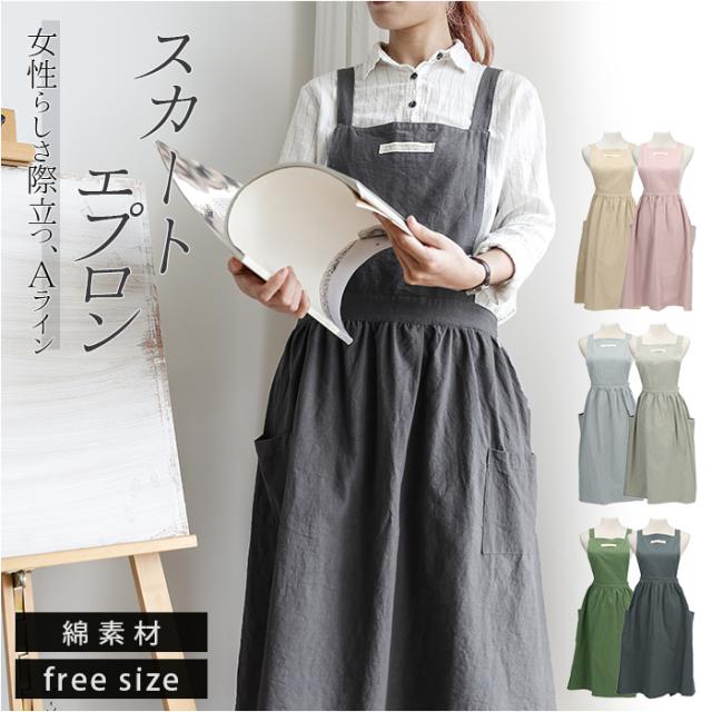 エプロン おしゃれ 通販 ナチュラル 安く て かわいい レディース ロング丈 大人 可愛い ワンピース 保育士 カフェエプロン スカート