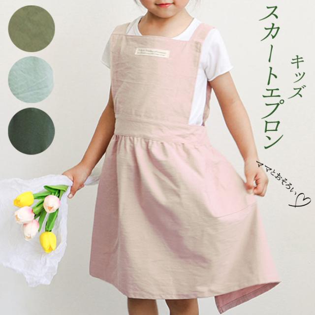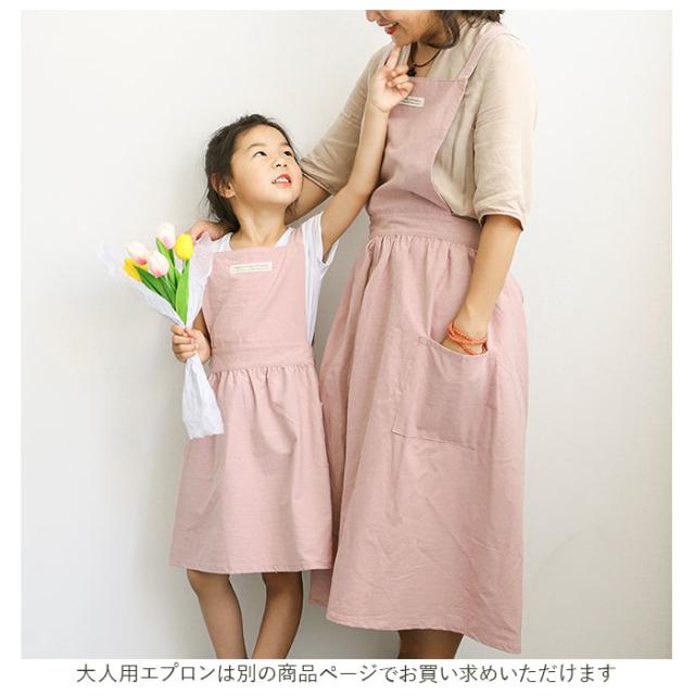 エプロン キッズ 女の子 通販 ナチュラル 安く て かわいい 親子 ペアルック お手伝い 小学生 園児 子ども 子供用 スカート シンプル フリル 無地 コットン ピンク ブルー グレー