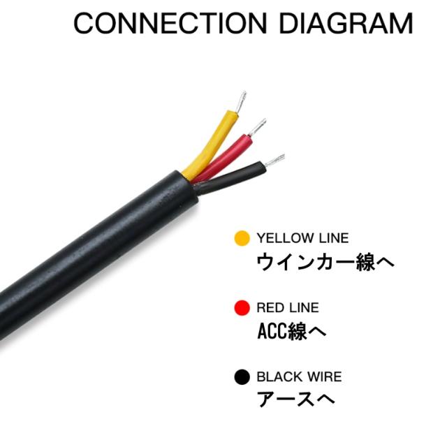 ・赤)ポジションorACC、黄)ウインカー、黒)アース 3本だけの簡単配線