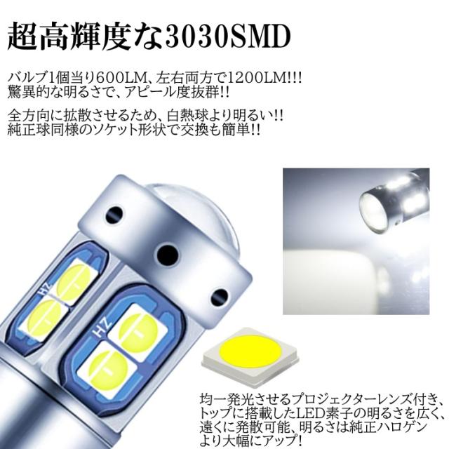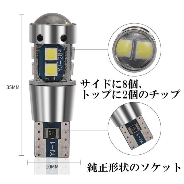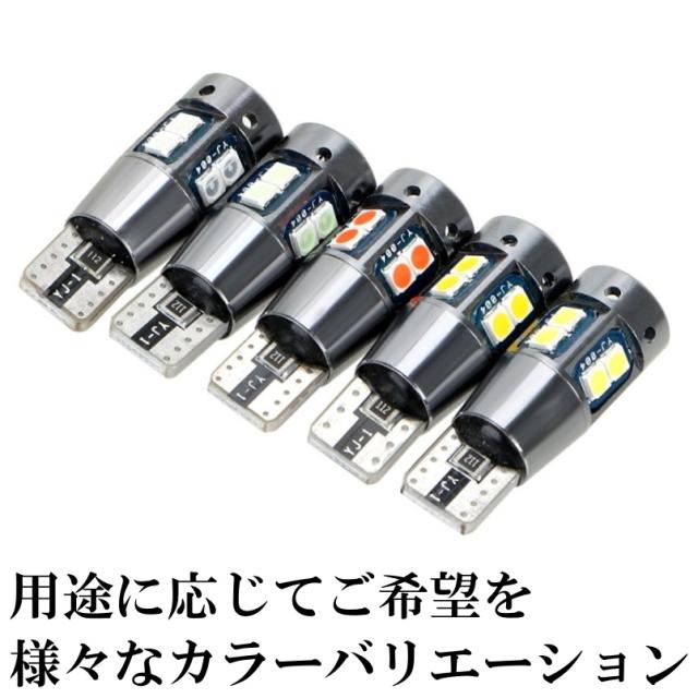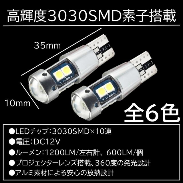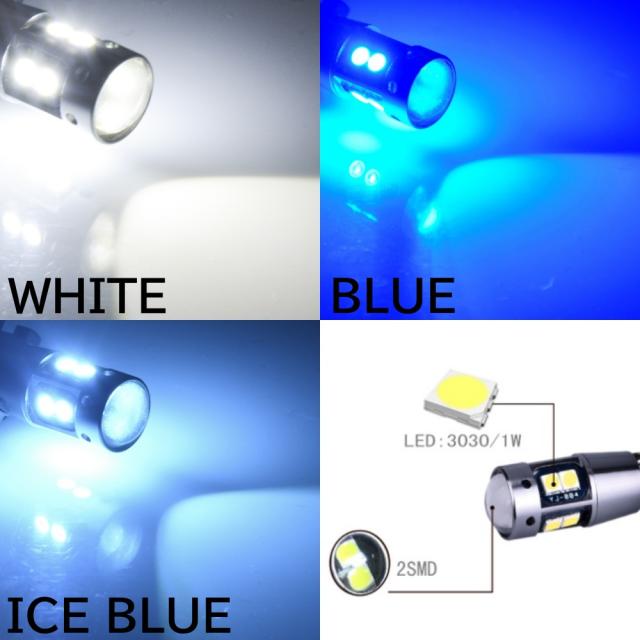T10/T15/T16 10SMD 全6色 爆光LED ポジション球 バックランプ球 12V 3030SMD 爆光LED 無極性 キャンセラー内蔵 4個セット