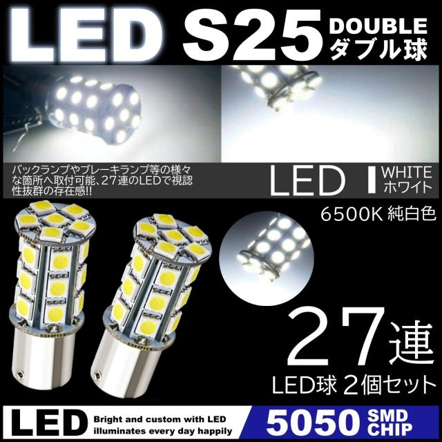 高輝度LED 27連SMD S25 ダブル 180度 ホワイト ストップランプ ブレーキランプ テールランプ 5050SMD 高輝度SMD 2個セット