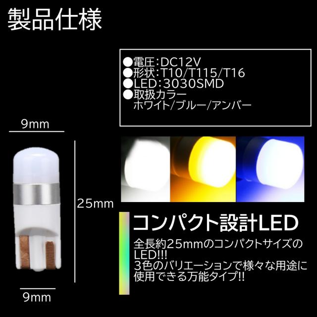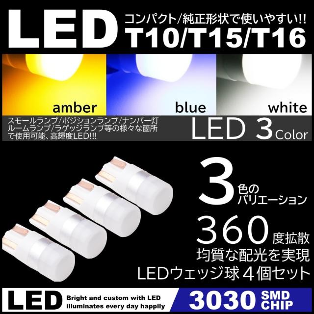 高輝度LED T10 T15 T16 ウェッジ球 LEDバルブ 4個SET ポジション 電球 ルームランプ ナンバー灯 カーテシ スモール ホワイト ブルー アンバー