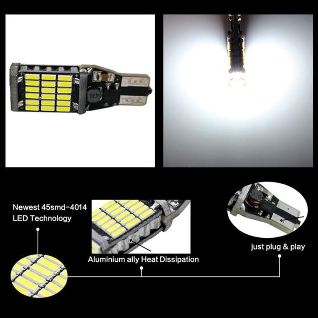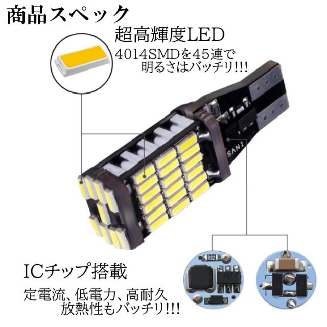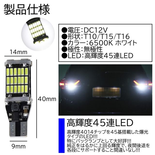 爆光 LEDバックランプ 12V 45連 LED SMD T10/T15/T16 バックランプ 車検対応 45SMD 6500K 無極性 キャンセラー内蔵 2個SET