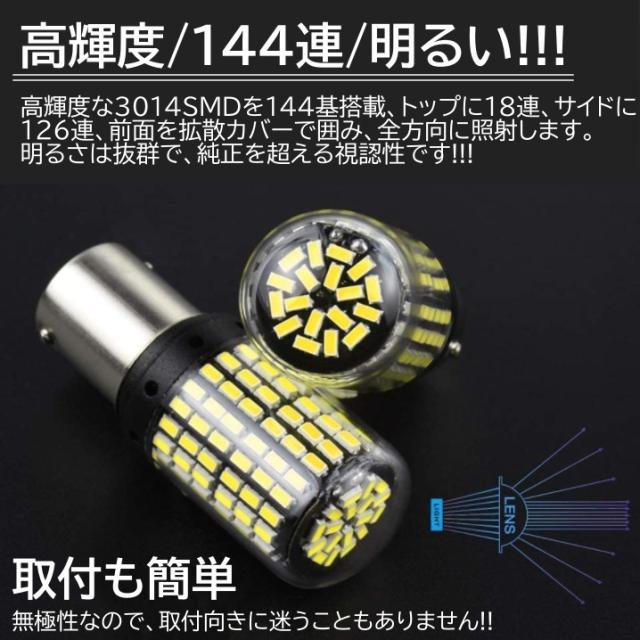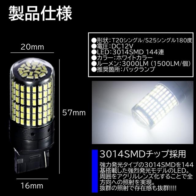 爆光LED T20 シングル球 S25 180度 144SMD バックランプ ホワイト 144連SMD 高輝度SMD ピンチ部違い対応 2個SET