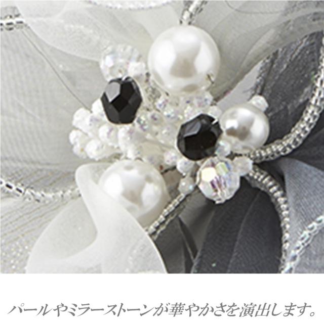 布を巧みに使い、パールやストーンで繊細な上品さを演出。