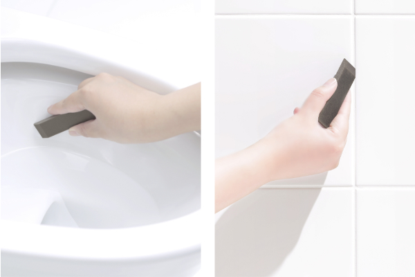 水アカ・黒ズミ・サビなどの汚れを消しゴムのように軽い力で落とすことが出来ます。