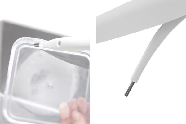 硬めの細部用ブラシは弁当箱のふたのミゾや、水筒の飲み口などスポンジやブラシでは取りきれない汚れもしっかり取ってくれます。開閉式で柄の中に収納できます。