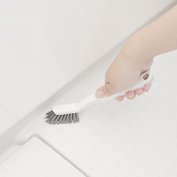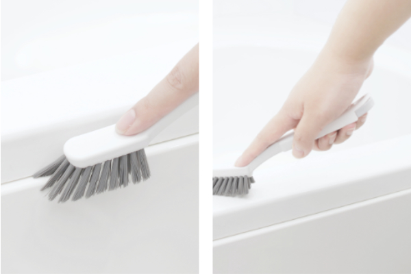 持ちやすく洗いやすい形状で、角度のついたブラシがすみずみまですっきり洗えます。排水口や蛇口まわり、浴室小物のお掃除に使えます。