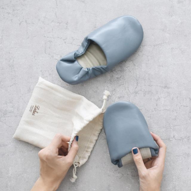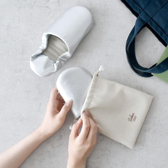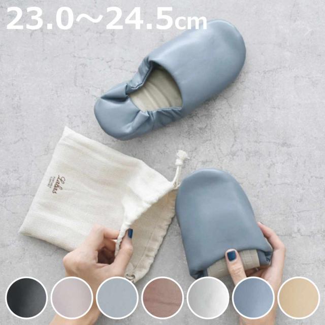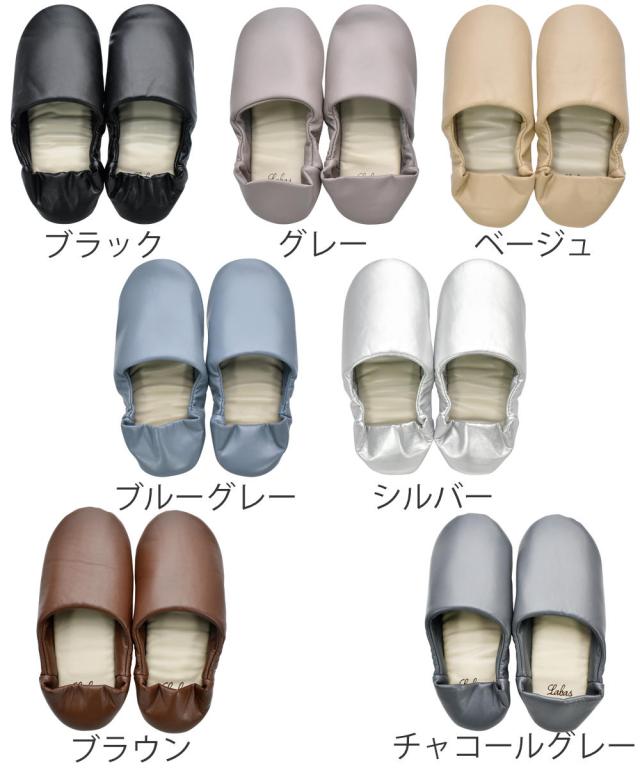 携帯スリッパ Labas Mサイズ 23.0〜24.5cm 袋付 ( ポータブルスリッパ トラベルスリッパ スリッパ バブーシュ フェイクレザー コンパクト 折りたたみ 2way 持ち運び 携帯 収納袋 巾着 滑りにくい 参観日 )