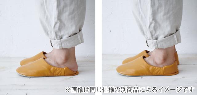 かかとを踏んで履けばラフに、かかとを上げて履くときちんと感の出るスリッパです。シーンに合わせて2通りの履き方ができます。