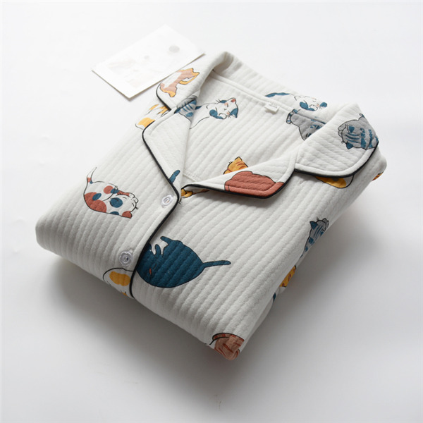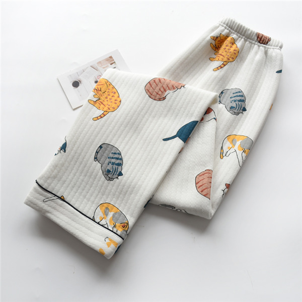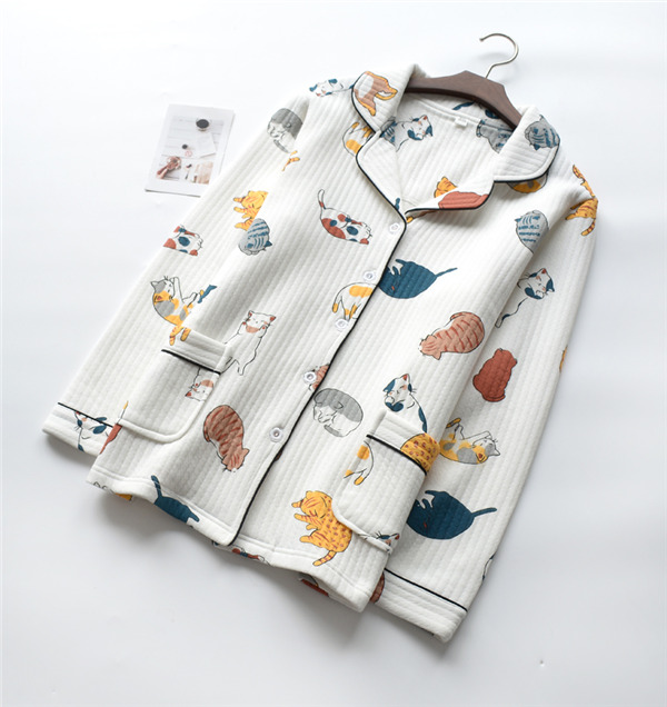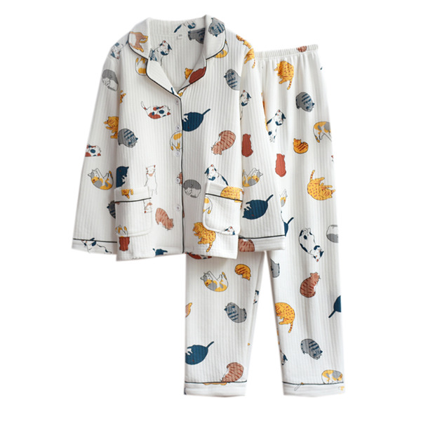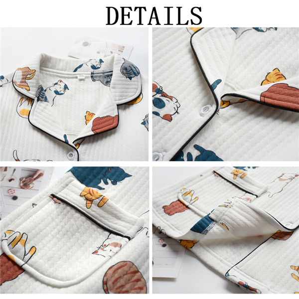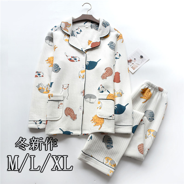ルームウエア パジャマ 猫柄 セットアップ 部屋着 綿100% パンツ 長袖 レディース パジャマ リラックスウェア 暖かい 前開き ゆったり ふんわり 体型カバー 春 秋 冬 可愛い プレゼント ギフト M/L/XL dh228d4d4s3