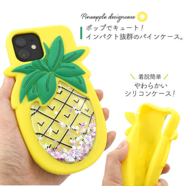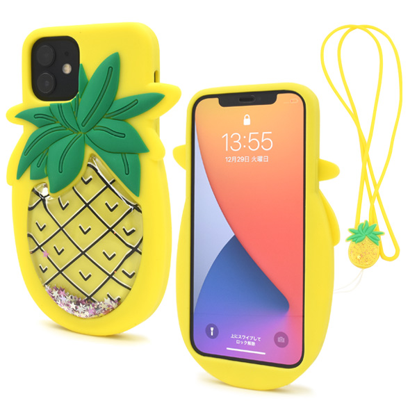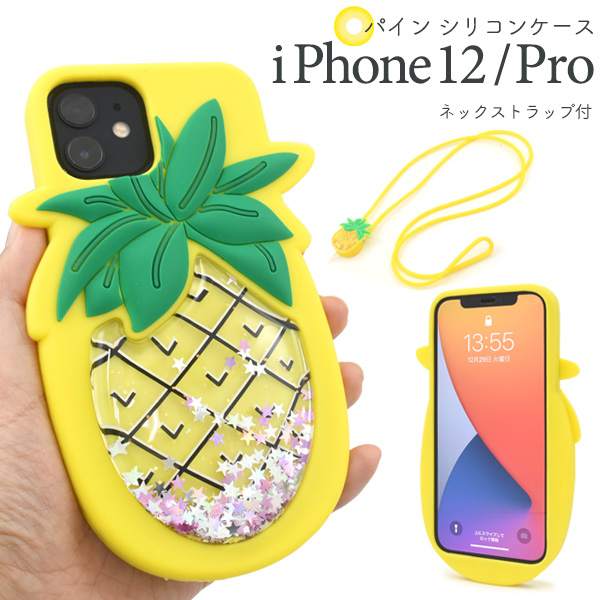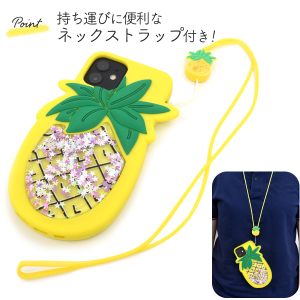 スマートフォンケース iPhone12 iPhone12Pro用 パインケース ラメが流れる シリコンケース 装着簡単 スマホケース ネックストラップ付き パイナップル 背面保護 韓国風 かわいい スマホカバー バックカバー SoftBank au docomo スマホショルダー スマホアクセサリー