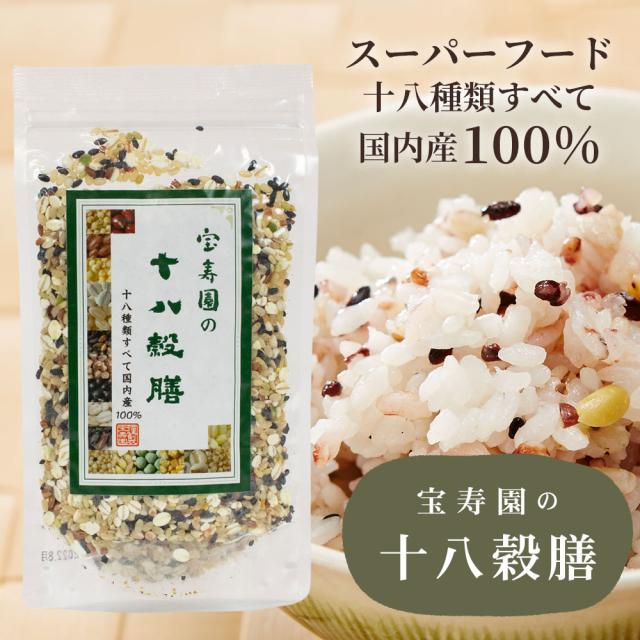 一切の妥協を廃して十八種を吟味厳選、その上おいしさも追求し、研究を重ね完成した「宝寿園の十八穀膳」は、これからの健康維持のための主食として、これほどすばらしいものはないと断言致します。