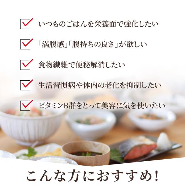 もっちりプチプチ楽しい食感、雑穀の豊かな栄養がもたらす深い味わい、いつものごはんが一層美味しく食べられます。