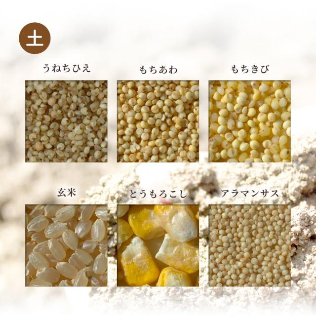 【土】うるちひえ、もちあわ、もちきび、玄米、とうもろこし、アラマンサス
