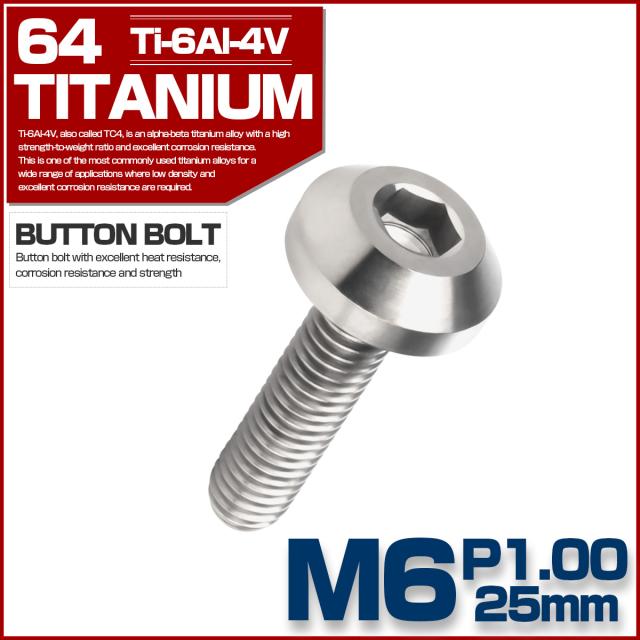 チタンボルト ボタンボルト M6×25mm P1.00 六角穴 テーパーヘッド カスタムボルト シルバー チタン原色 JA855