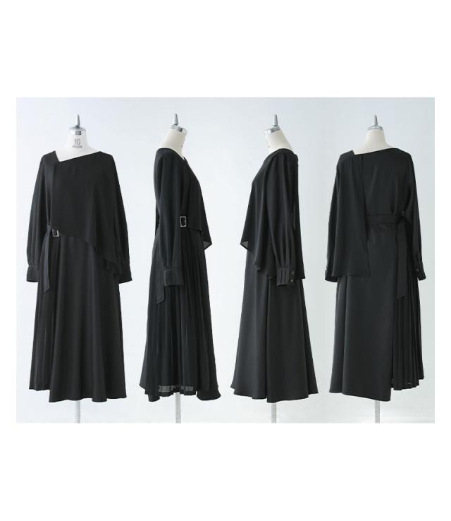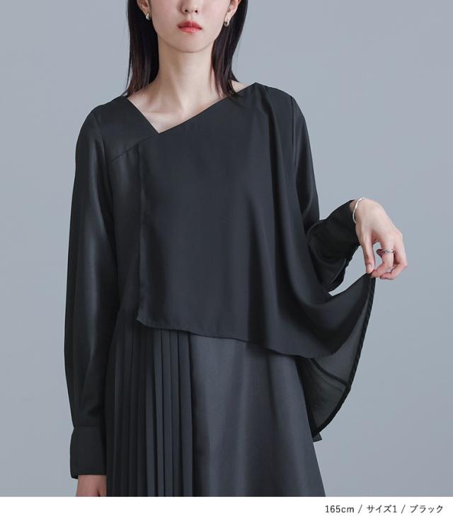 レディース ワンピース ロングワンピース パーティーワンピース オケージョンワンピース Vネック 長袖 ロング丈 マキシ丈 タック プリーツ ウエストベルト ブラウジング アシンメトリー アシメ 変形 Aライン 切り替え 無地 シフォン 異素材MIX 異素材 おうちで洗える 裏地付き 秋冬春 パーティー 女子会 二次会 結婚式 フォーマル オケージョン 入園式 入学式 卒園式 卒業式 学校行事 お宮参り 七五三 ママ 母 母親 ママスーツ 30代 40代 50代 お出掛け 大人女子 大人可愛い お洒落可愛い 上品 きれいめ クラシック モード シンプル ラフ Sサイズ Mサイズ Lサイズ LLサイズ 3Lサイズ ぽっちゃり 体型カバー 大きいサイズ kOhAKU コハク ブラック 黒 oshareoc15[ID]wfk0012[kOhAKUアシメデザインフレアワンピース]